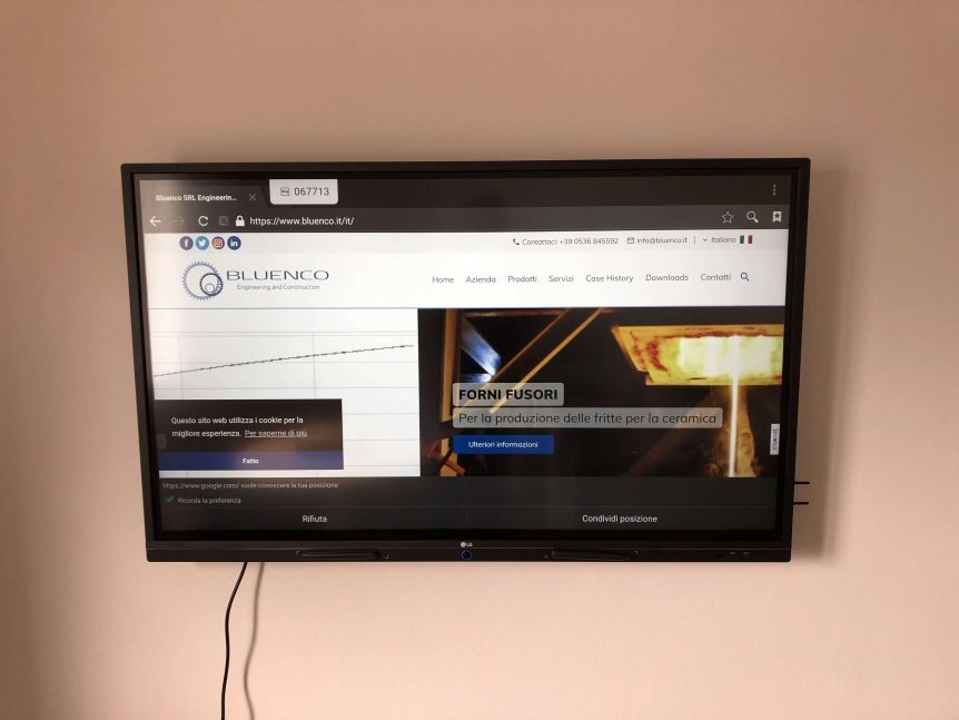 Insieme al cliente abbiamo individuato quale prodotto era migliore per la loro sala riunioni , e abbiamo fornito e installato due monitor touch 75TR3BF e 55TR3BG (a bordo hanno una versione speciale di Android con alcune interessanti app per le meeting room).